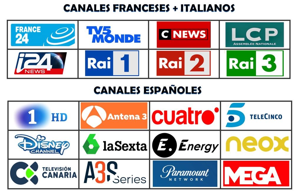 Para usar el paquete básico de canales que ofrecemos en el hotel/complejo debe haber una antena TDT y dos parabólicas de 1,10mts orientadas al satélite Intelsat 901 y al Astra 19.2. Si no disponen de las parabólicas nuestros técnicos pueden instalarlas. Si desean más canales de otros satélites también se pueden añadir o bien quitar canales que no quieran. Aquí mostramos el paquete de canales que ofrecemos: